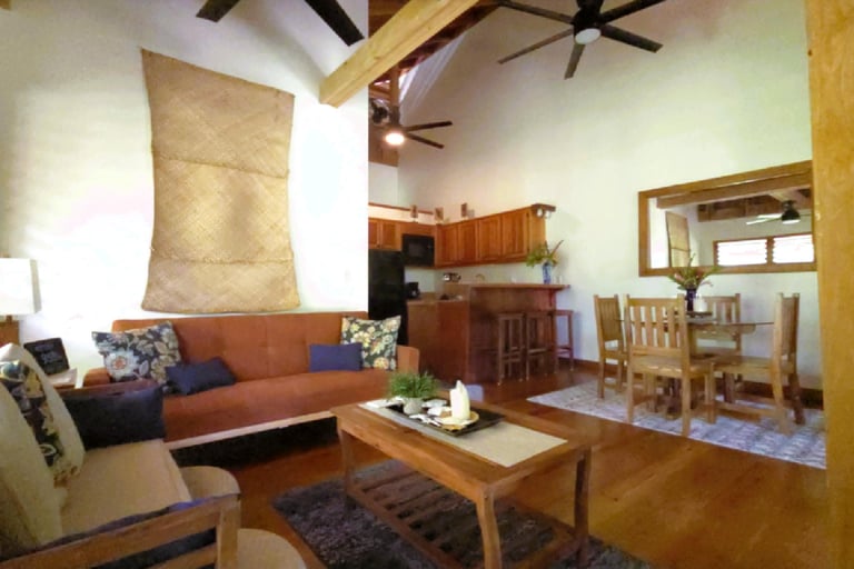 Enjoy a one minute stroll to a pristine, secluded beach from our tranquil bungalow.